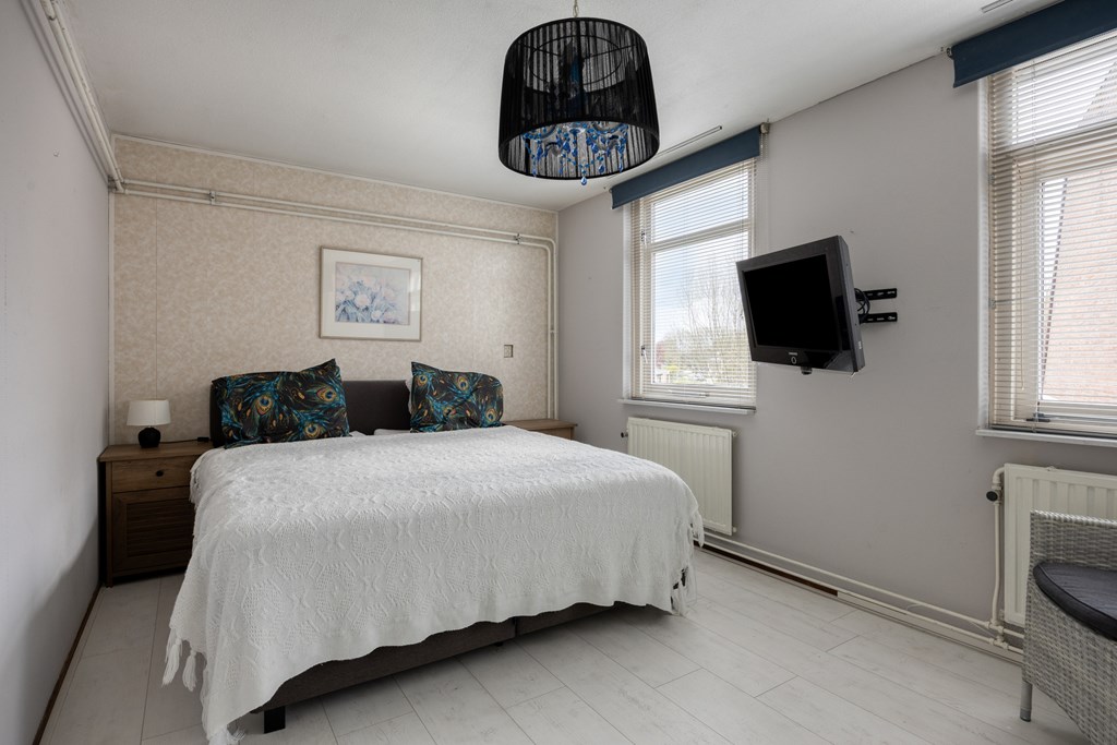 Op de eerste verdieping zijn de slaapkamers. De master bedroom is gelegen over de gehele breedte van het huis. Maar ook de andere twee slaapkamers zijn ruim en keurig onderhouden zoals eigenlijk de gehele woning. Op de eerste verdieping is ook de badkamer. Mooi betegeld, een fraai badkamermeubel, het tweede toilet en met een heel sfeervol ligbad op pootjes. De badkamer en het toilet zijn functioneel en nog goed te gebruiken, maar zijn van een oudere uitvoering en verdienen op termijn modernisering.