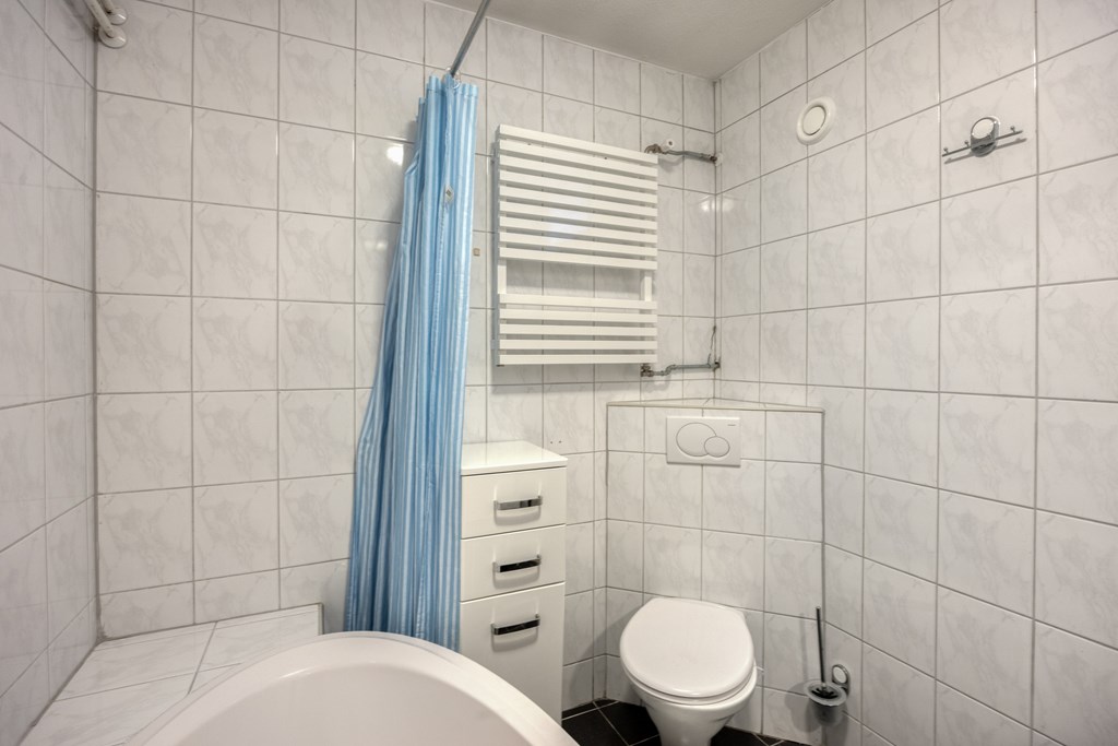 De volgende trap gaat naar de tweede etage. Glazen deuren zorgen voor veel licht op deze etage met twee ruime slaapkamers. Hier is ook de wasruimte. En waar bij veel woningen de wasruimte maar klein is, is dit bij het Azaleapark 34 een grote ruimte. Genoeg plek dus voor bijvoorbeeld een wasrek, strijkplank of extra opbergruimte.
