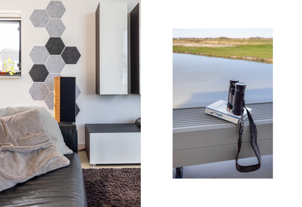 Living in this location is not an everyday experience. As you approach the home, you immediately feel that something special is happening here. The house literally stands in the water, making every step across the jetty a preview of the peace and space waiting inside. Everything about this home has been designed to maximize enjoyment of the breathtaking views over the Nieuwe Driemanspolder – a landscape that is constantly changing yet endlessly serene.