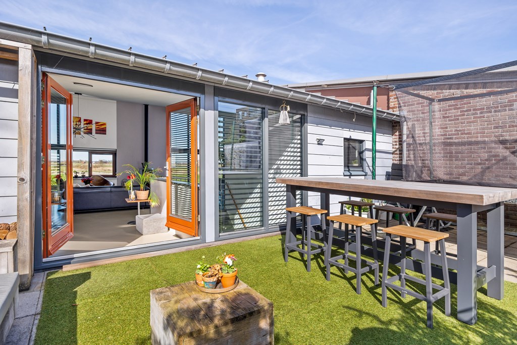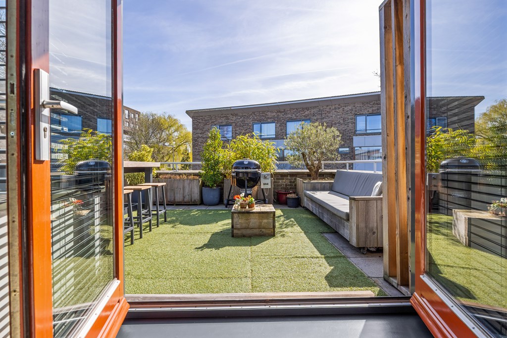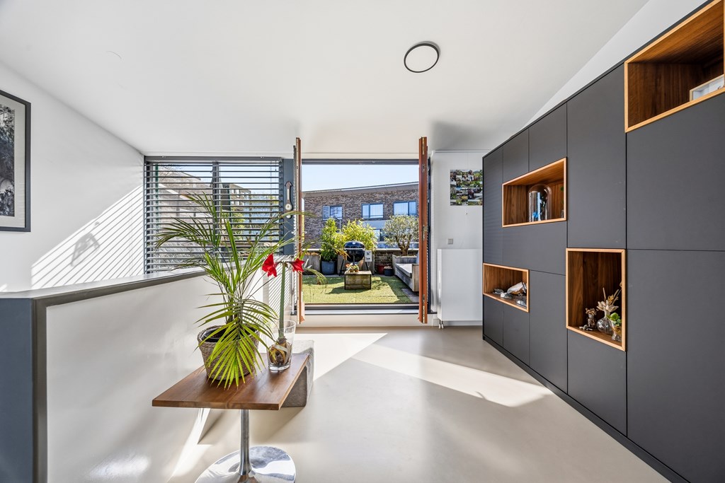 And then there is the large sunny roof terrace of approximately 40 m² facing south. Through the French doors you step outside for a cup of coffee in the morning sun or a good book in the evening light.