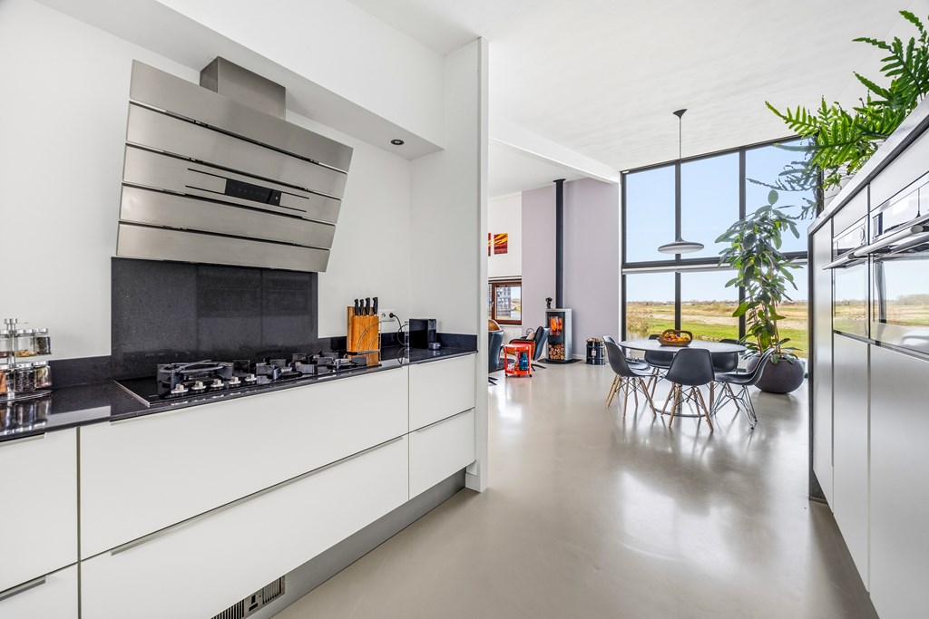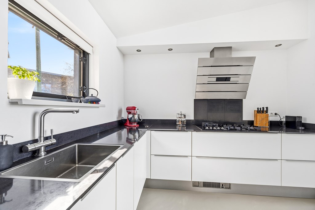 • Halfopen keuken met composiet werkbladen, gasfornuis met wokbrander, kokend waterkraan en diverse inbouwapparatuur