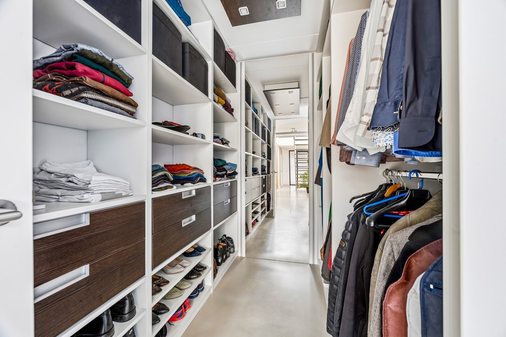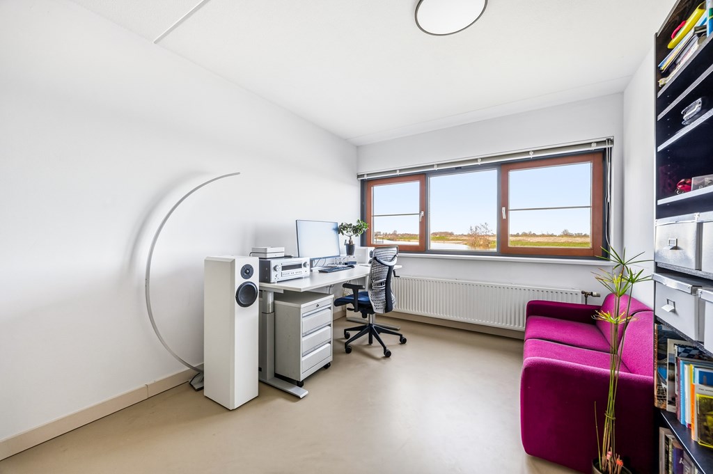 De vierde slaapkamer is de hoofdslaapkamer, en die overtreft alles. Extra ruim, met openslaande deuren naar een eigen balkon boven het water. Hier wordt u wakker met het zachte licht van de ochtend en valt u in slaap met de stilte van de polder. De aangrenzende walk-in-closet zorgt voor rust in de slaapruimte en luxe bij het opstaan.