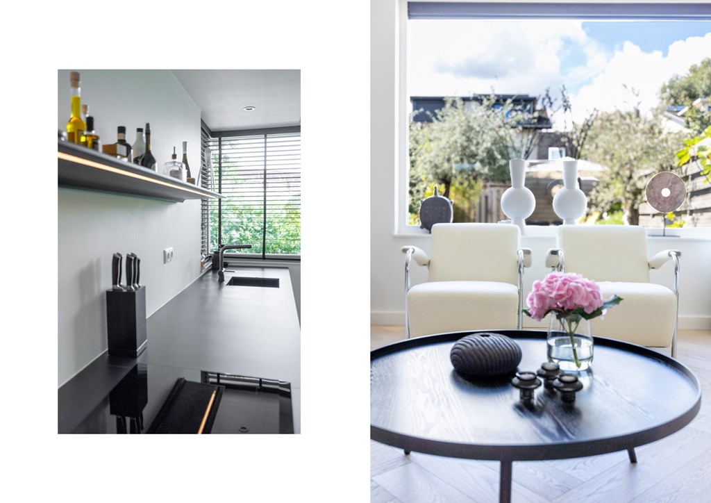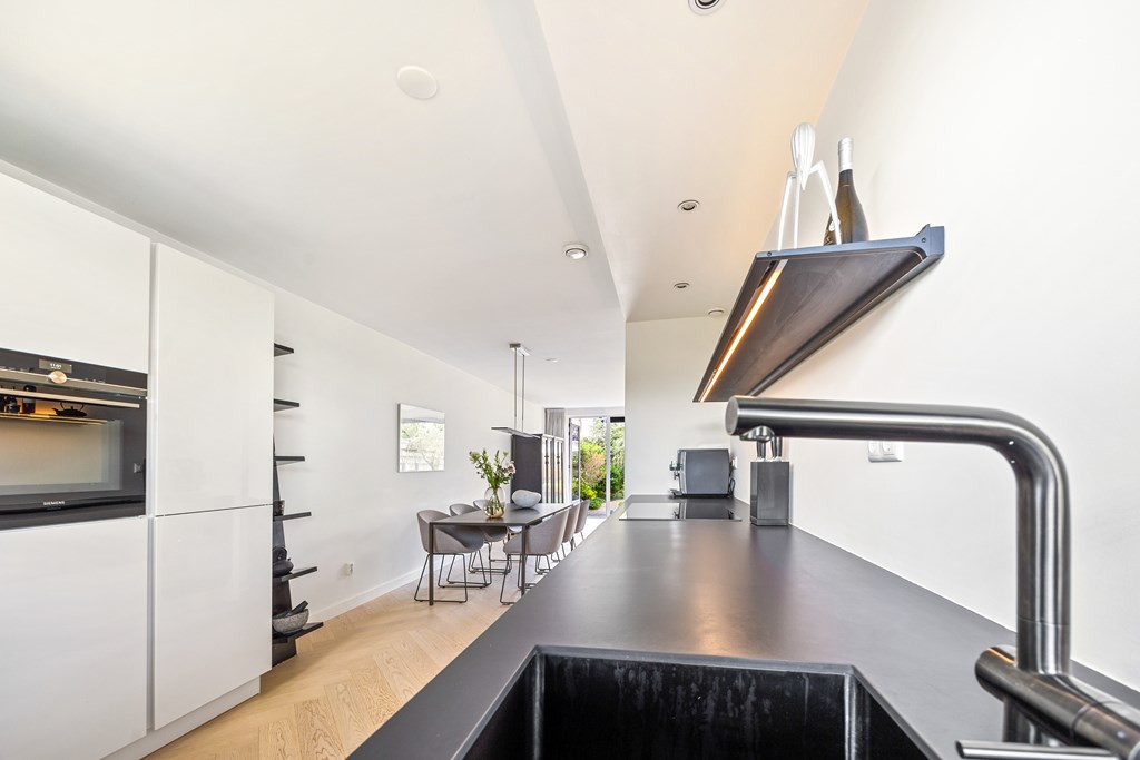 Het hart van de woning is ongetwijfeld de keuken, die in 2023 volledig is vernieuwd. Uitgevoerd met een keramisch werkblad, hoogwaardige Siemens-inbouwapparatuur, een wijnkoeler en een extra diep werkblad, is dit een plek waar kookliefhebbers én designliefhebbers hun hart ophalen. De ingebouwde Philips Hue-spots zorgen voor de juiste sfeer bij elke gelegenheid.