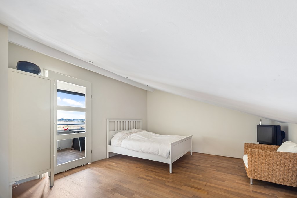 De grote open zolderruimte is nu in gebruik als logeerplek, maar hier kunt u met gemak een extra slaapkamer of werkruimte realiseren, zeker met de optie voor een grote dakkapel.