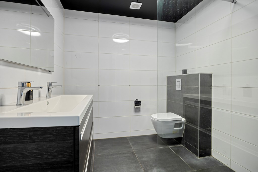 • Twee luxe badkamers met dubbele wastafel en inloopdouche