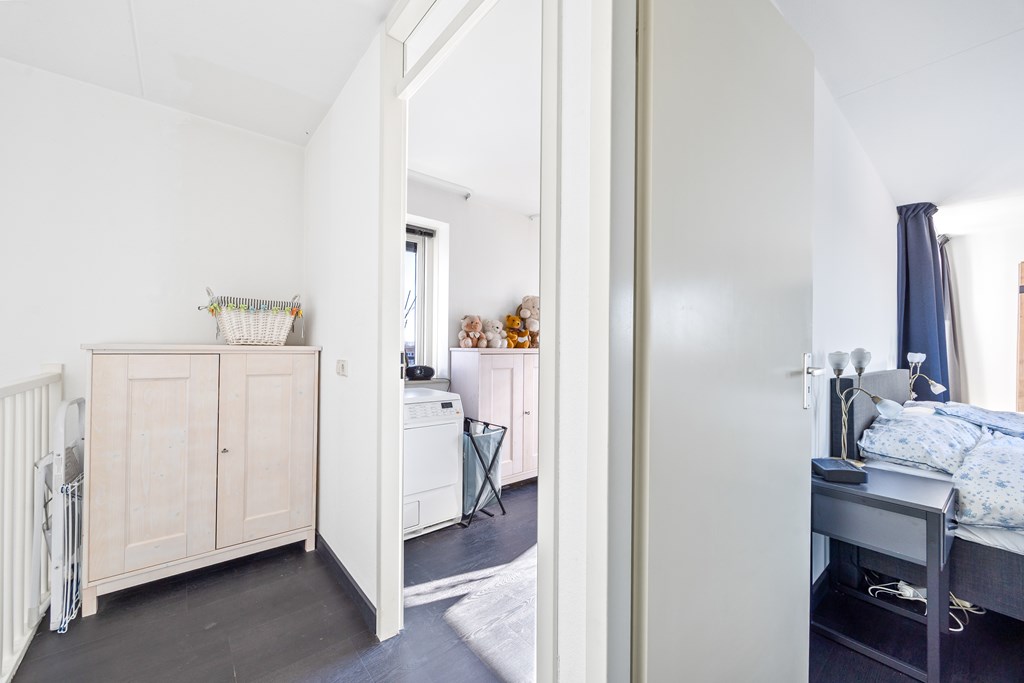 Ook de aansluitingen voor de witgoedopstelling zijn hier geplaatst. Via de overloop bereikt u de kast met de cv-ketel en de MV-box.