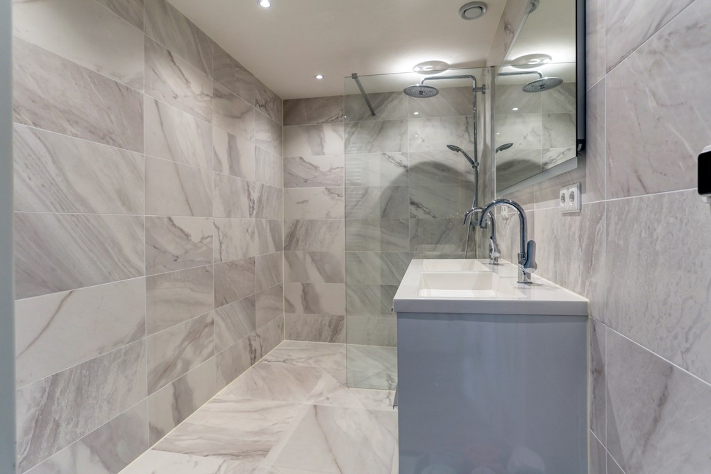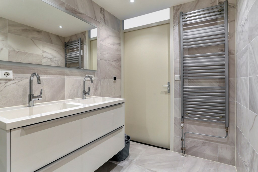 * Nieuwe (2021)badkamer met grote inloopdouche, dubbel wastafelmeubel en vloerverwarming