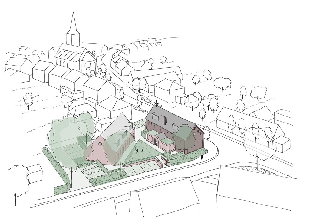 De karakteristieke elementen van het schoolgebouw blijven zorgvuldig behouden: de metselwerkbogen, het klokkentorentje en de authentieke raampartijen. Het voormalige schoolplein wordt een groen woonhofje waar bewoners elkaar ontmoeten. Met de kerk om de hoek en voorzieningen op loopafstand combineer je dorpse rust met alle gemakken binnen handbereik.